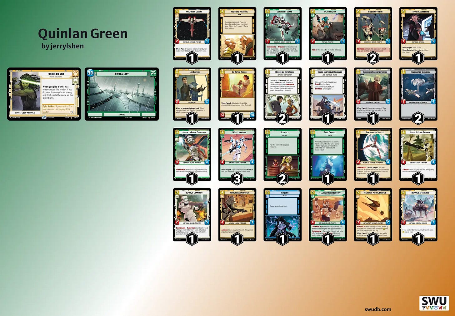 tl;dr: I played Quinlan Green for the first round, then pivoted to Grievous Green; Alyssa played Anakin Green.