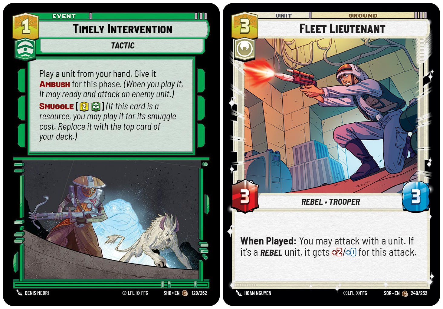 Scenario 2: Player 1 played Timely Intervention to play Fleet Lieutenant.